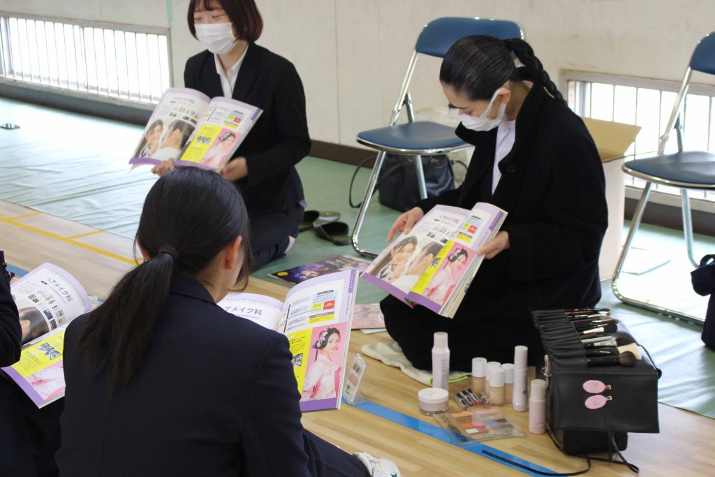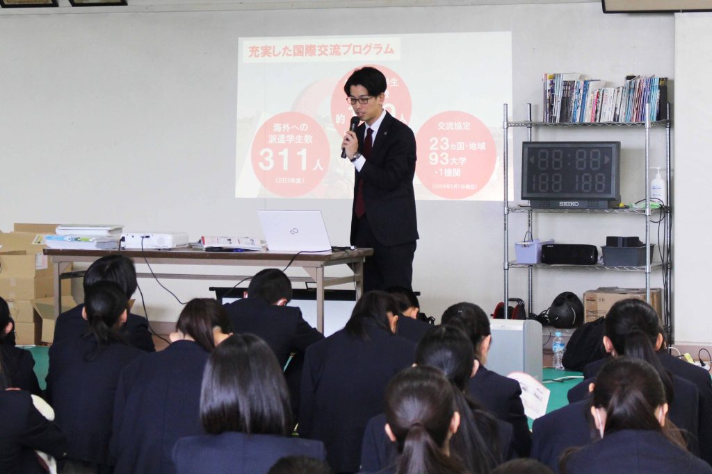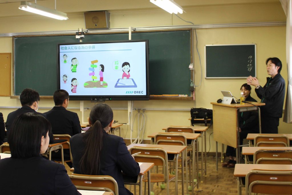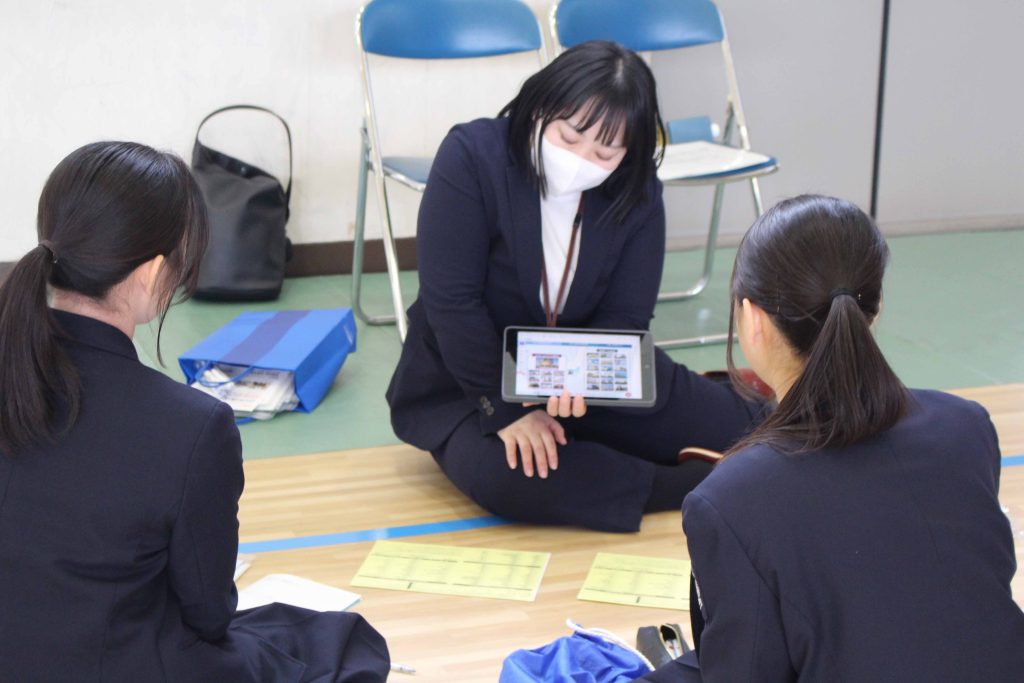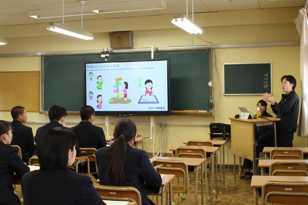 3月14日(金)、久商キャリアセミナーを本校で実施しました。最初に1年生は進路講演会、2年生は中経協の方々の出前授業を受け、その後、進学希望者は大学の説明会、就職希望者は企業説明会に参加し、公務員希望者は就職した先輩からのメッセージビデオの視聴や公務員模試などを受けました。