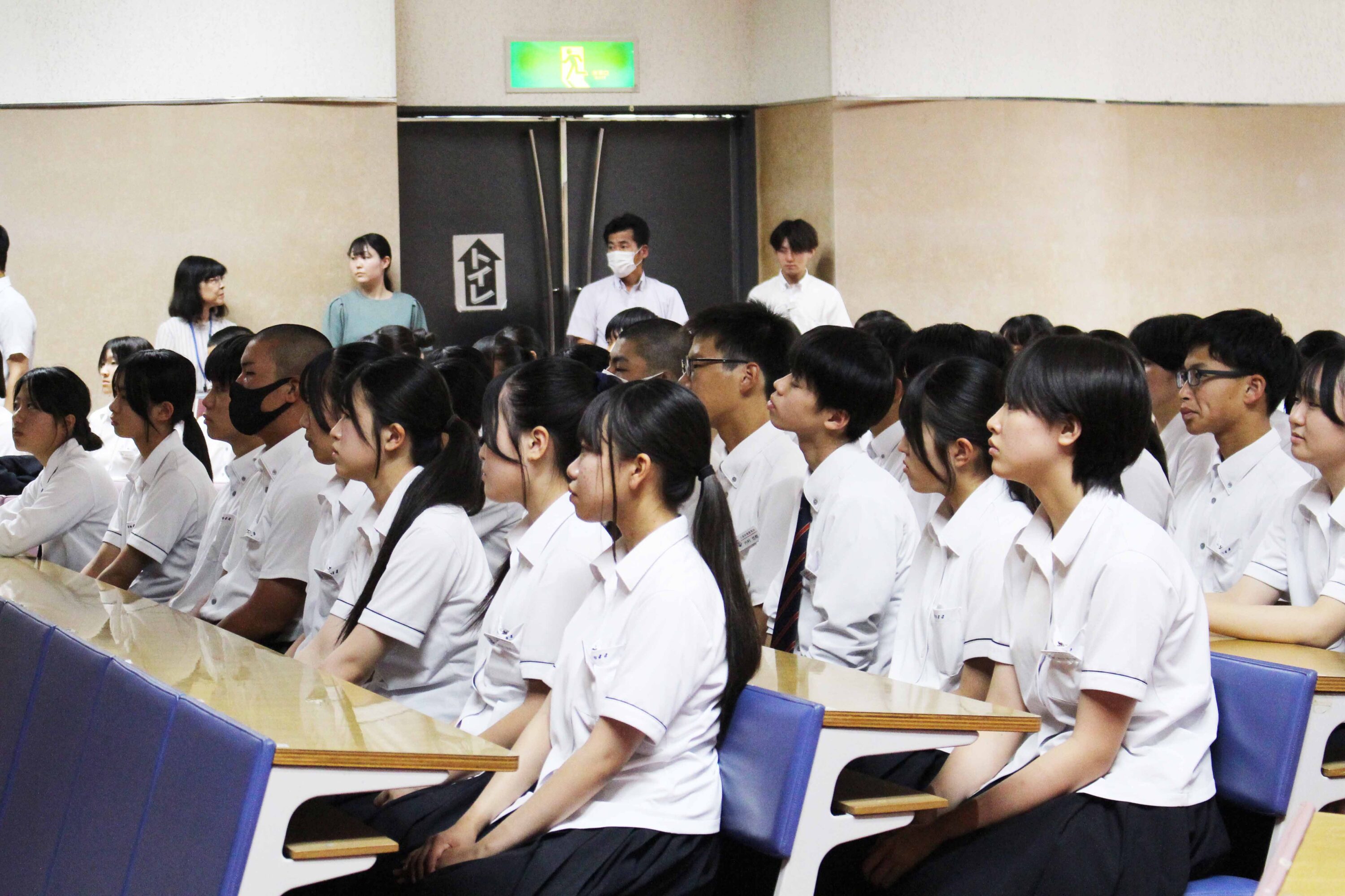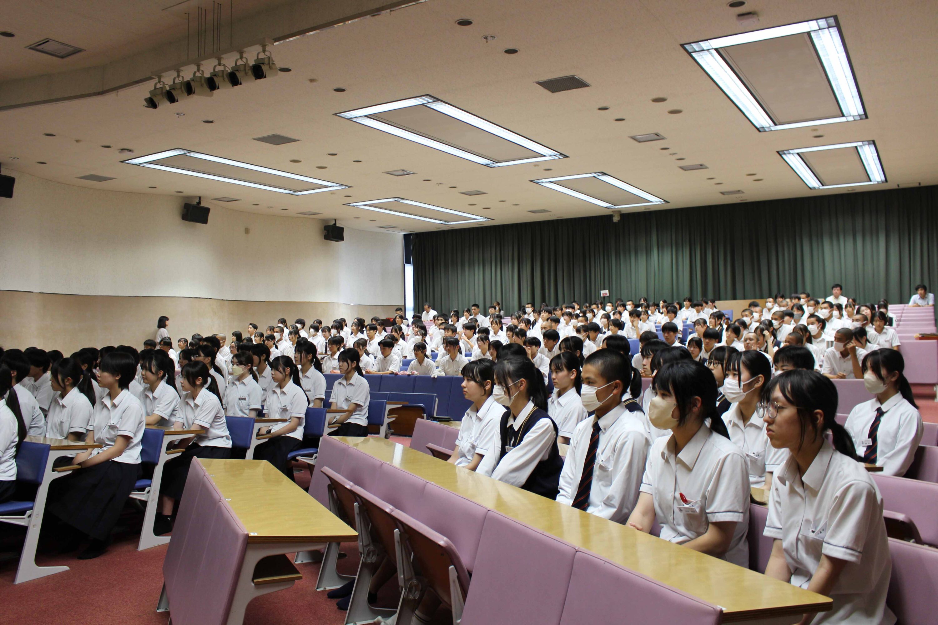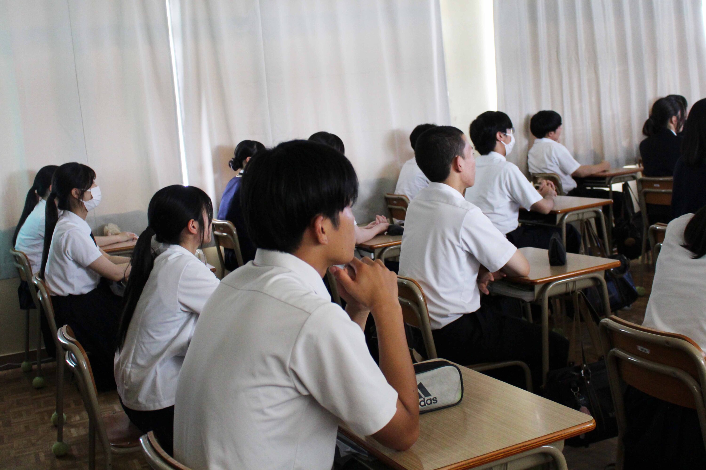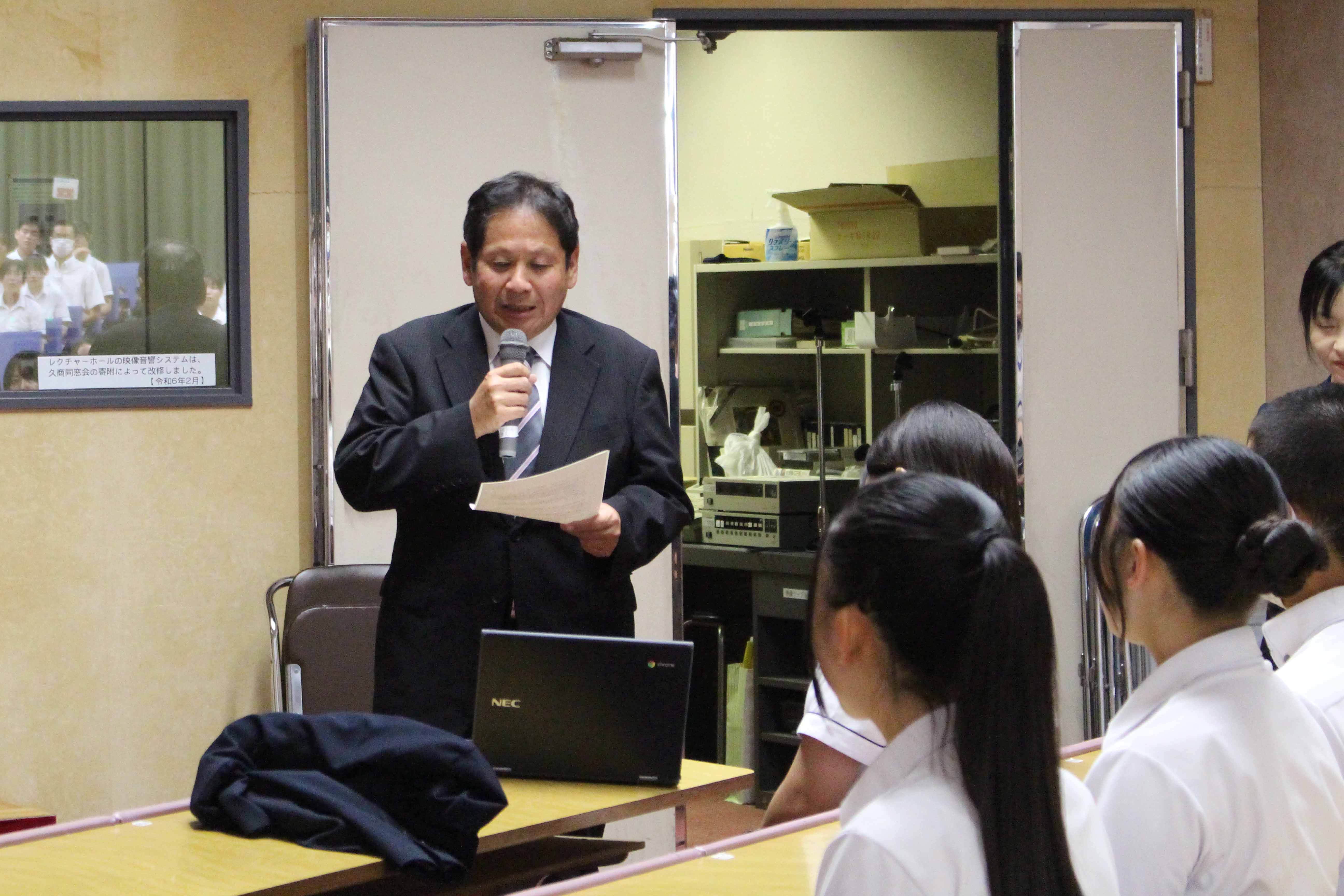 7月9日(水)、交通安全教室が行われました。今回は久留米警察署の方に来校していただき、1年生はレクチャーホールで、2,3年生は教室でのオンライン配信で講話をきき高校生の身近な問題である自転車事故、特に加害者事故をテーマによくある事故のパターン、運転ルール・マナー、加害事故で問われる責任や備えとしての損害保険などについて学び、安全意識を高めました。