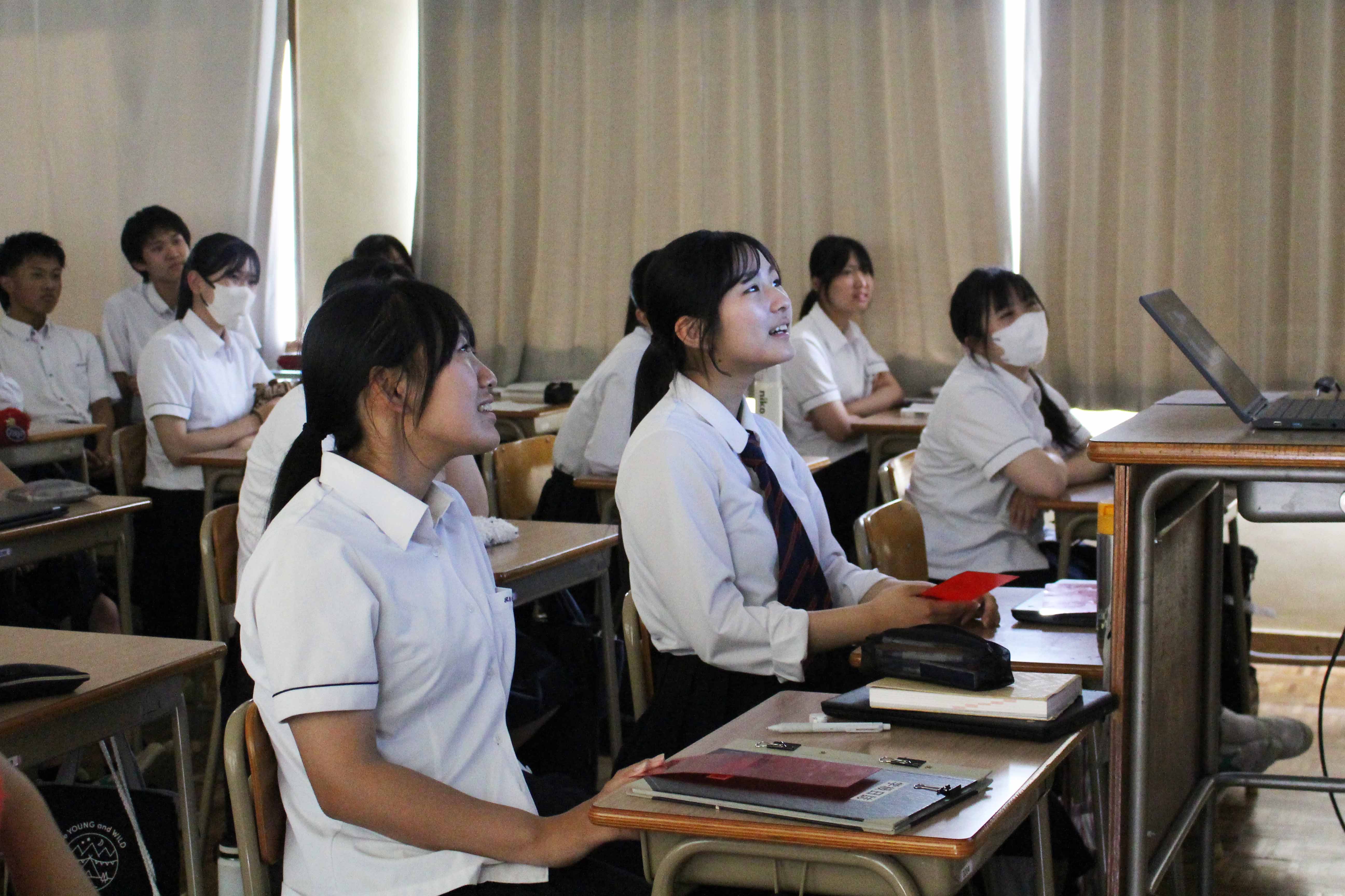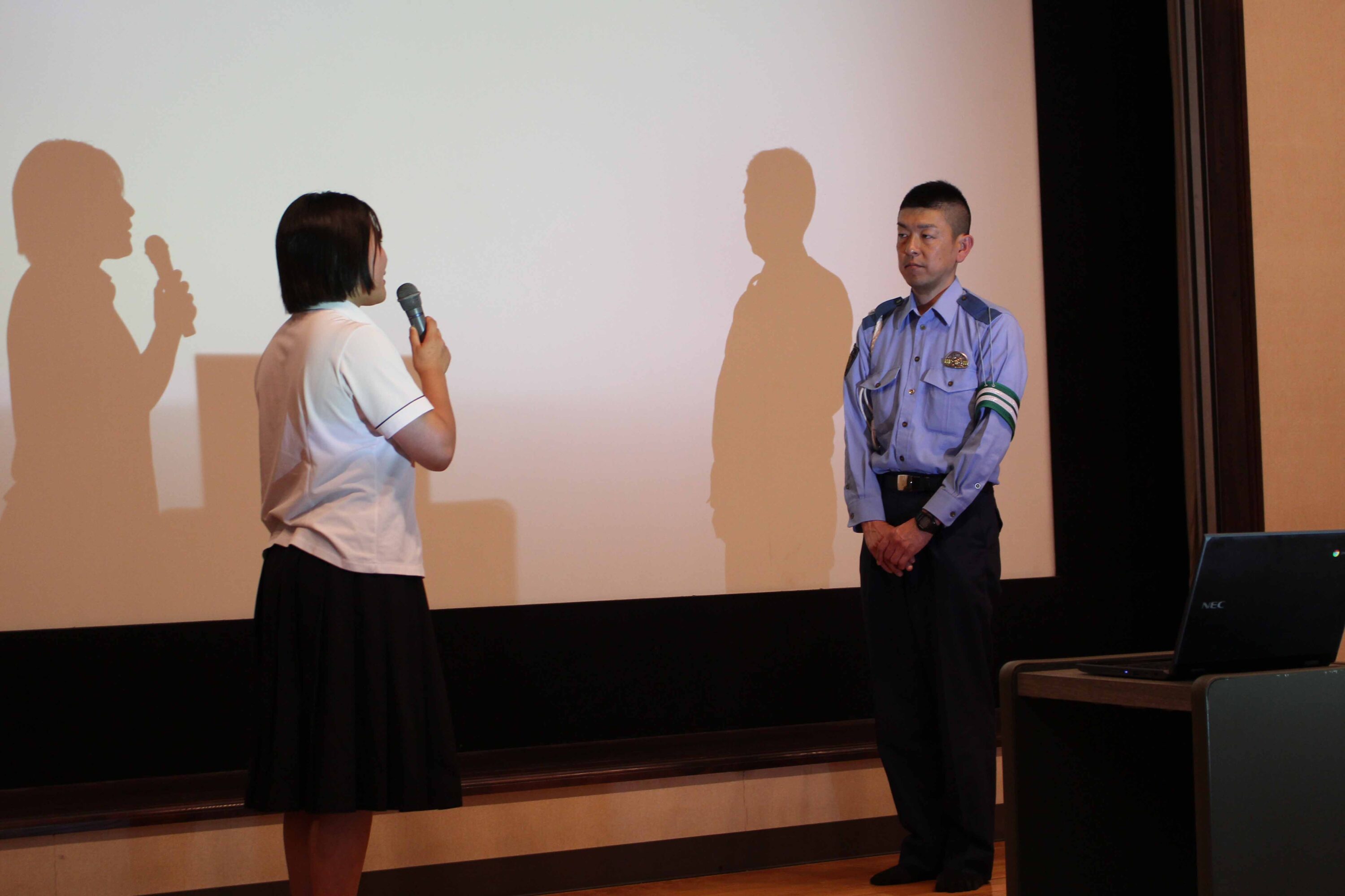 わかりやすいお話や動画などで楽しく学ぶことができました。また、知っているようで知らないルールもあったりして少し驚きました。久商は小学校や中学校が並ぶところにあるので、私たち高校生がしっかりルールを守っていきたいと思います。今日はありがとうございました。