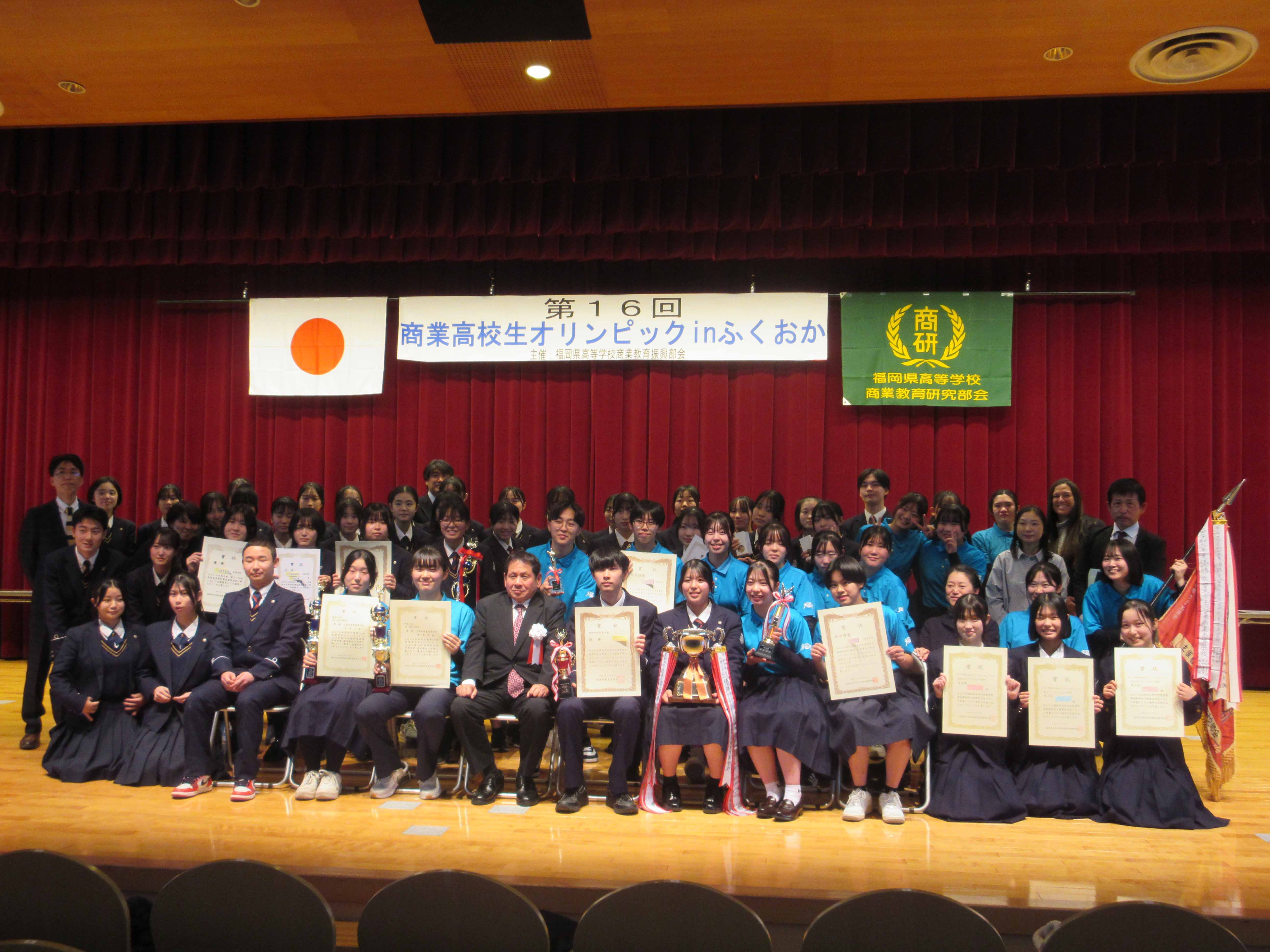12月6日(土)、福岡大学で「第16回商業高校生オリンピック in ふくおか」が行われました。これは毎年県内の商業科のある高校が一同に集まり、簿記部門、珠算・電卓部門、情報処理部門、ワープロ部門、英語スピーチ部門、課題研究部門のそれぞれの部門で競技に出場し、その成績を学校単位で競うものです。久商は昨年までで14回総合優勝を重ねており、今年度も見事15回目の総合優勝を果たしました。英語スピーチ部門、課題研究部門の結果は以下になります。それ以外の部門は部活動報告をごらんください。