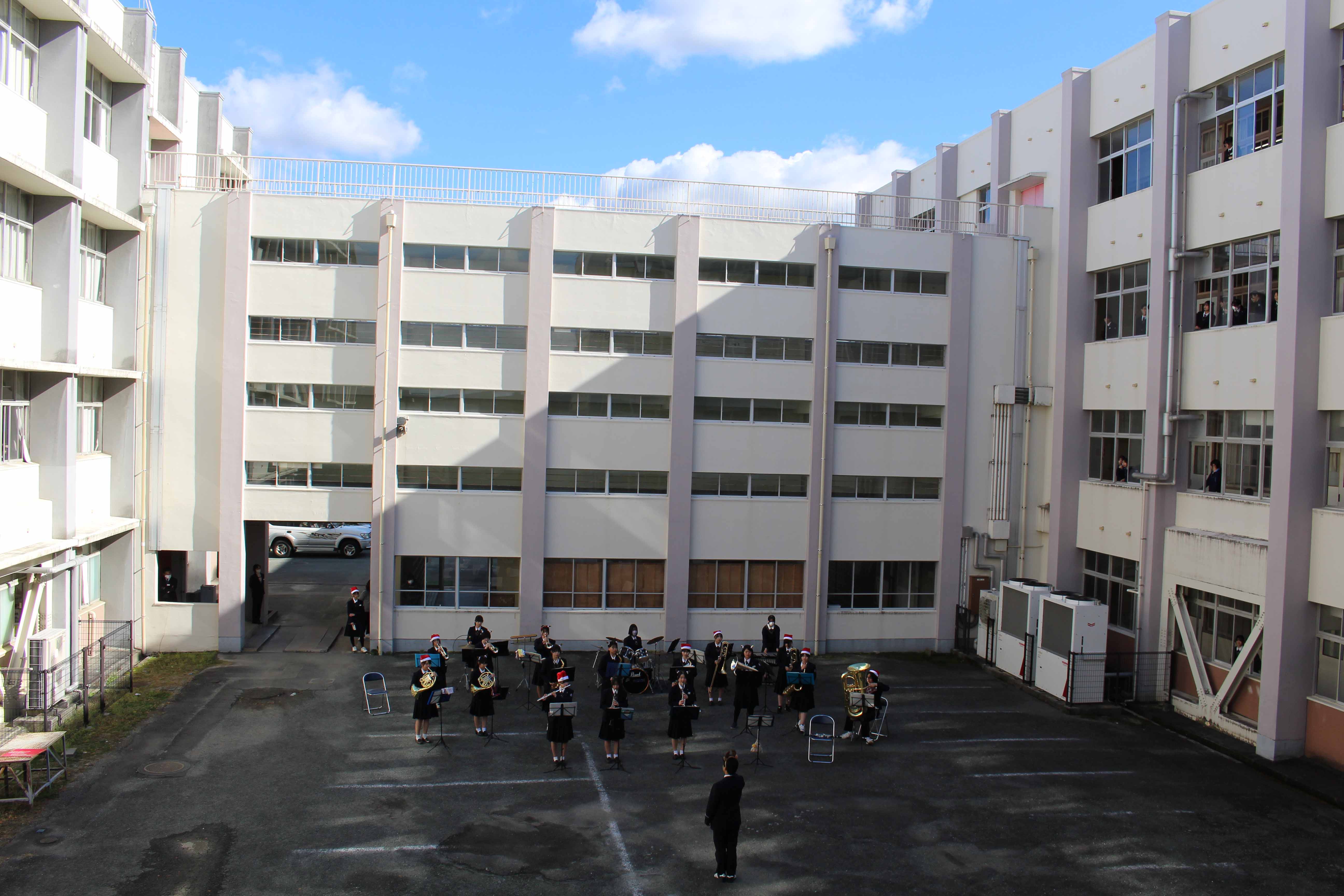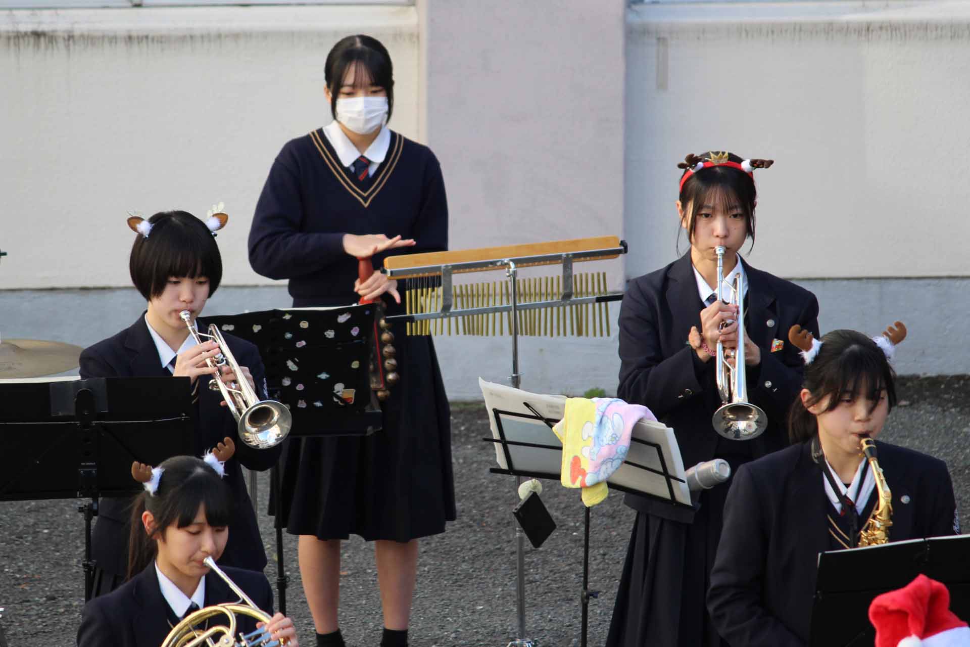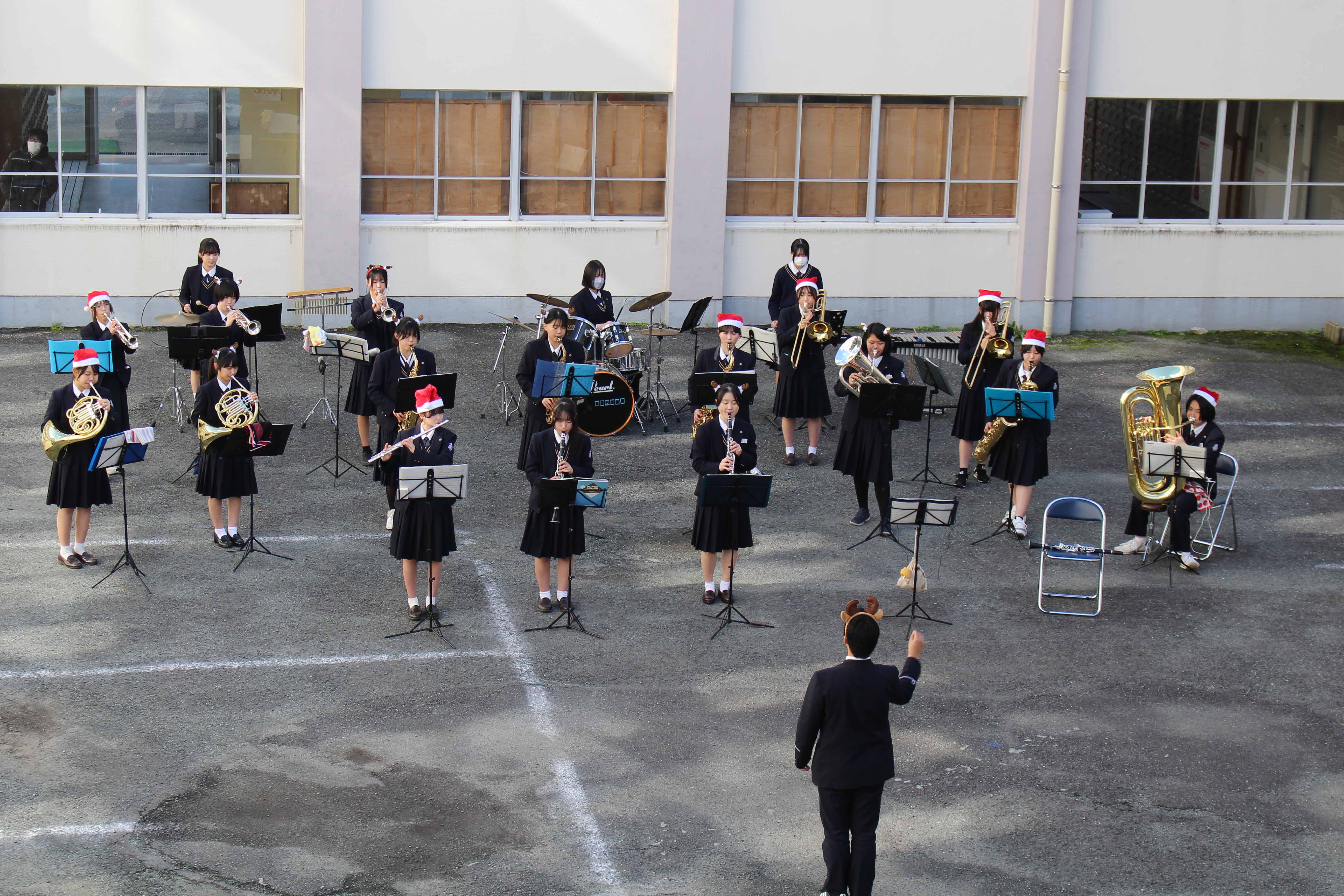 12月22日(月)、昼休みに吹奏楽部による中庭コンサートが開催されました。2025年も残りわずかとなり、1年間の感謝の気持ちを込めて演奏を行いました。演奏を聴いていたみんなも楽しい昼休みのひと時をすごすことができました。演奏曲 ドラゴンナイト/ セカイノオワリ ヒロイン/ バックナンバー アンコール曲 クリスマスソング