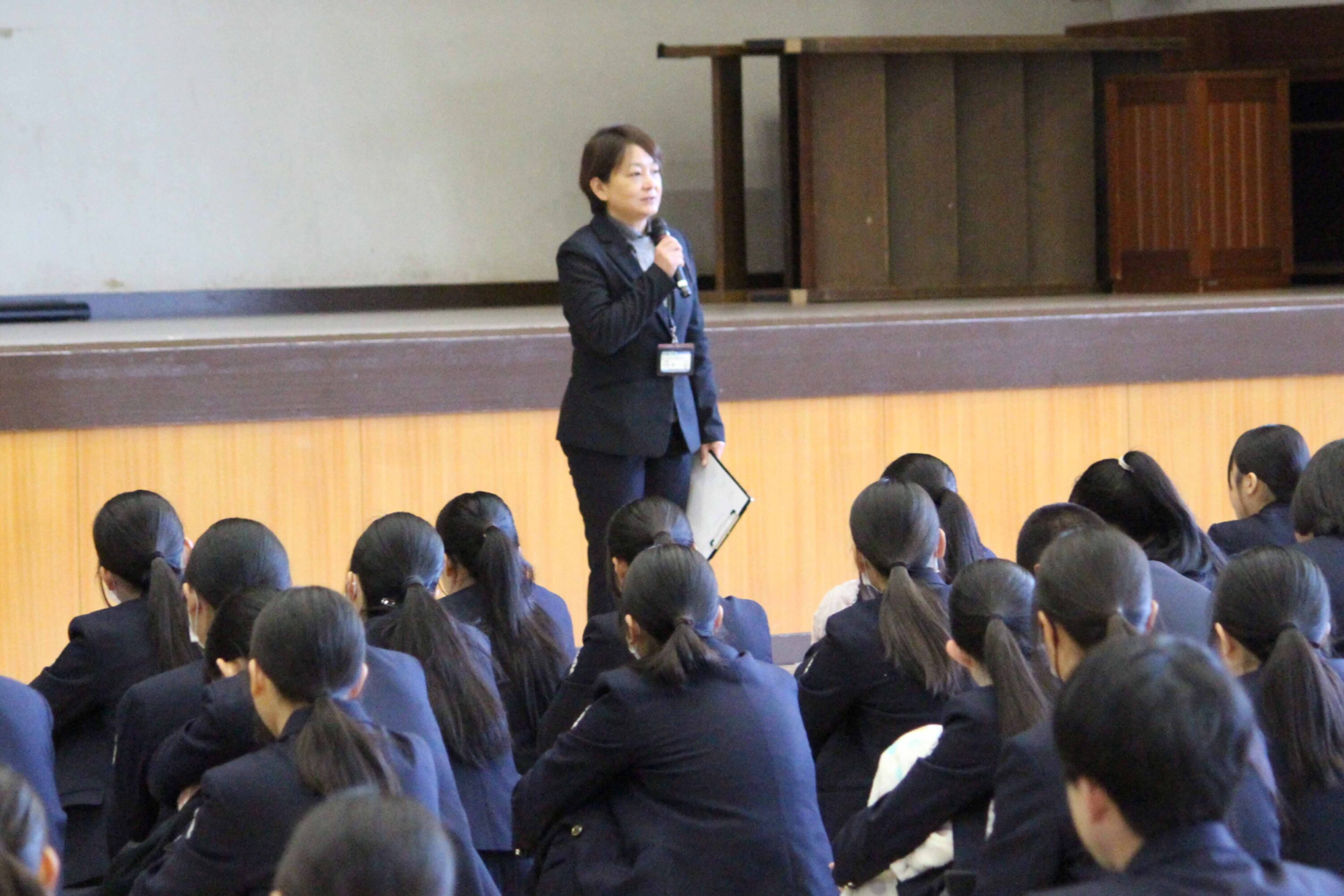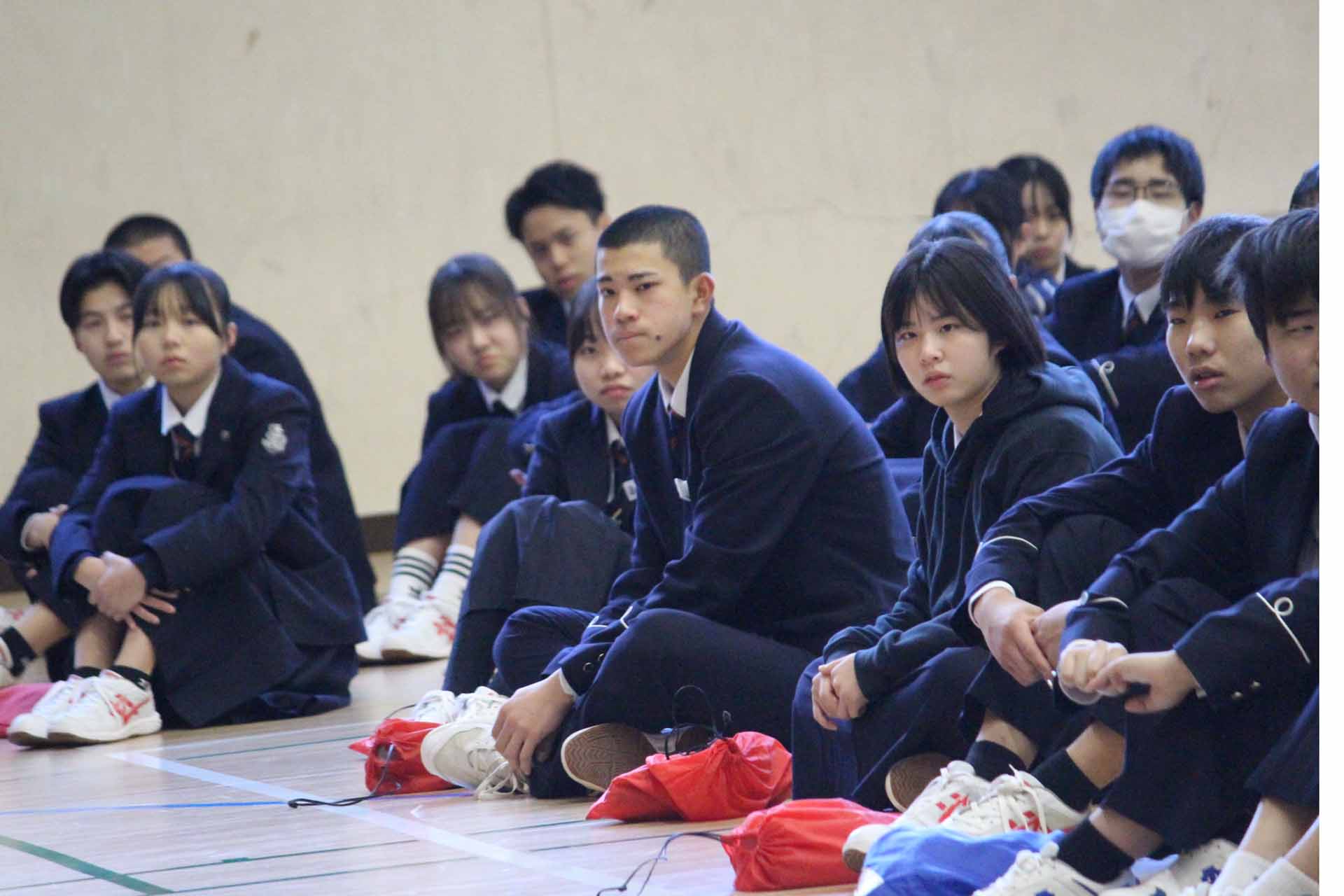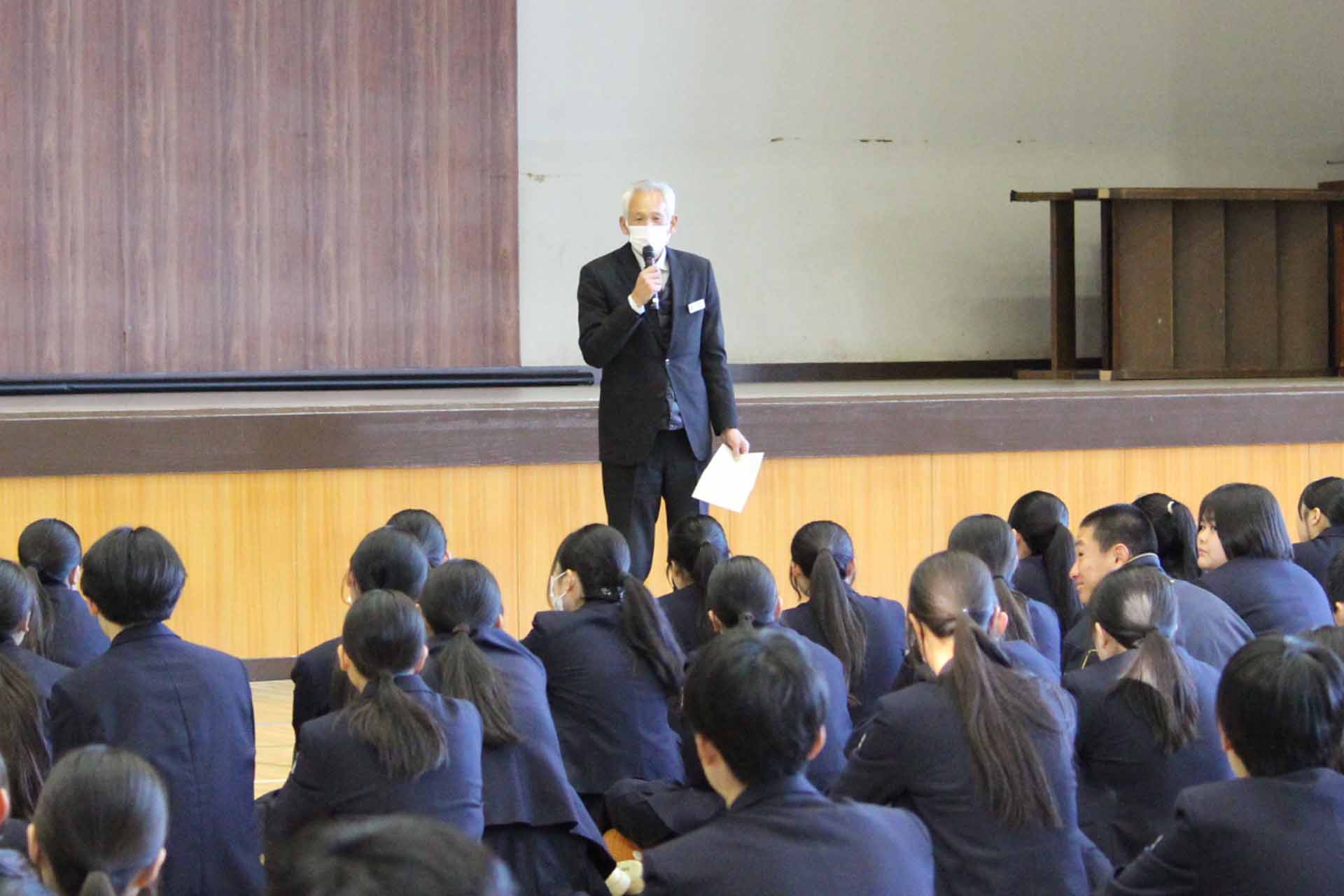 みなさん、おはようございます。今年度の全校生徒がそろう全校朝礼は今日が最後となります。皆さんは冬休みはどんな風に過ごしましたか?私は、課題もあったのですが締め切りが遅かったので、冬休み中はゆっくり過ごしてしまいました。あと、少しで締め切り日になると考えると休み中にしておけば良かったと反省しています。1年生にはそうならないように、早めに取りかかってほしいです。2年生は一緒に課題頑張りましょう。3年生の先輩方は2月から週一登校になるので、1、2年生は今のうちに聞きたいことをいろいろ聞いておきましょう。
