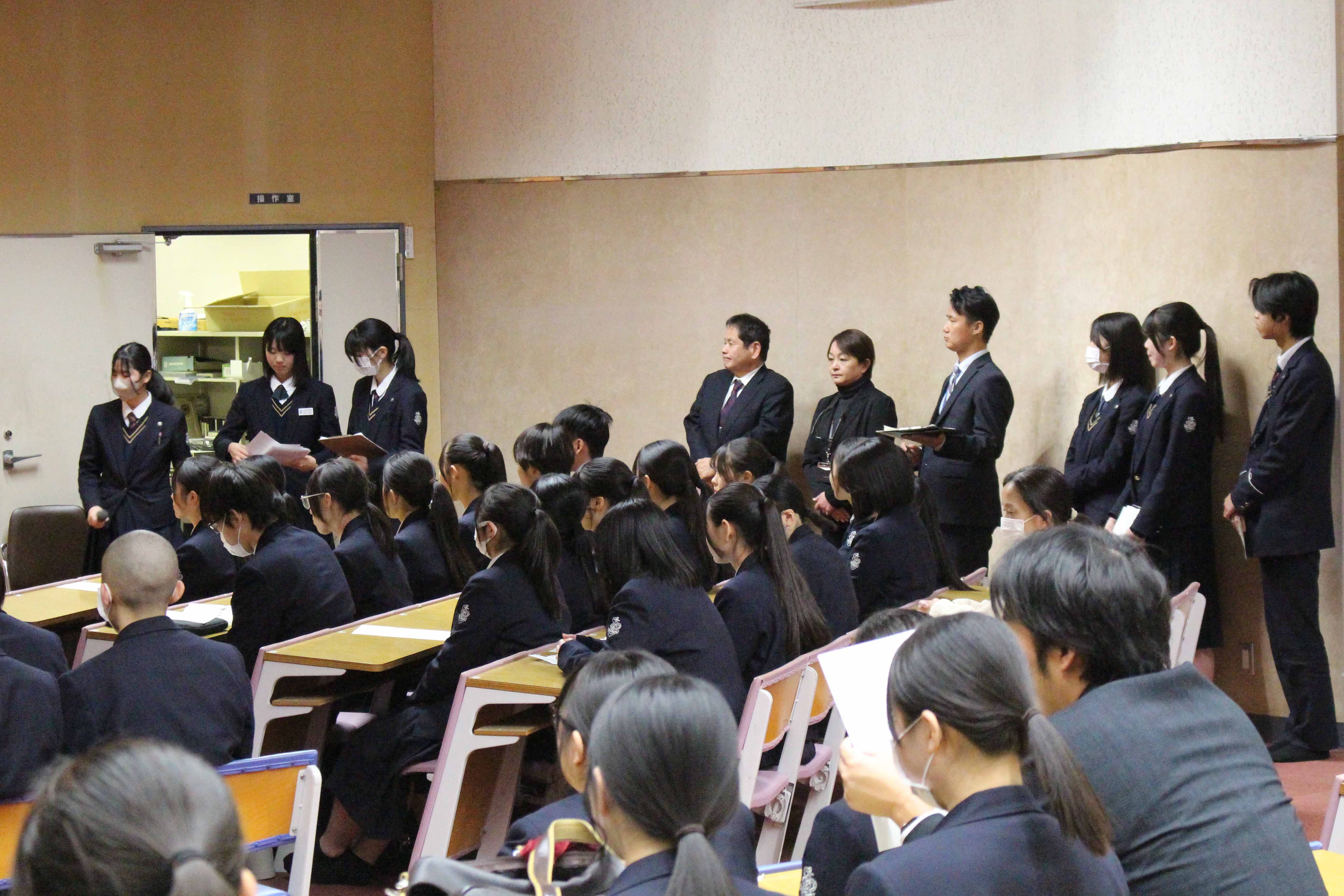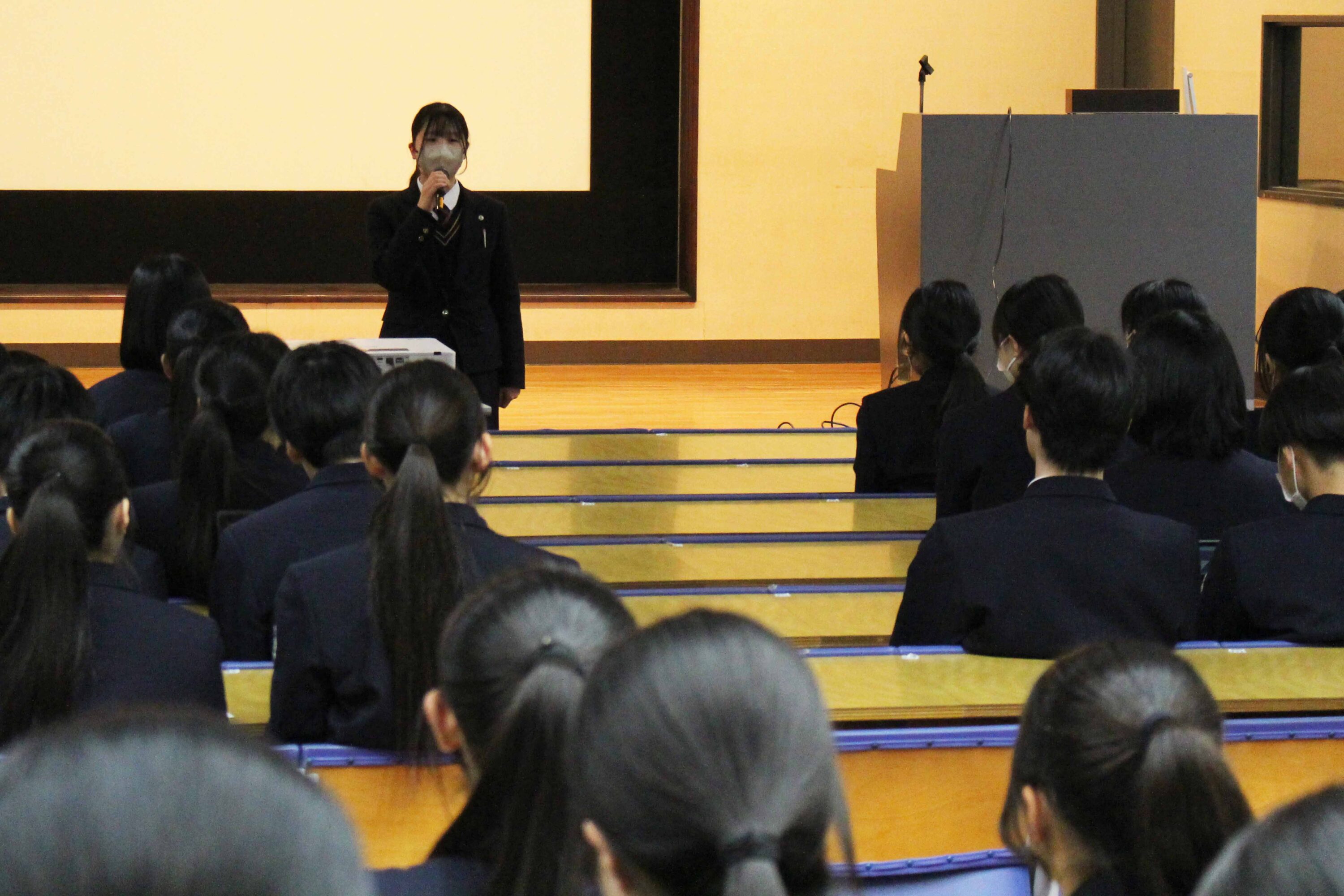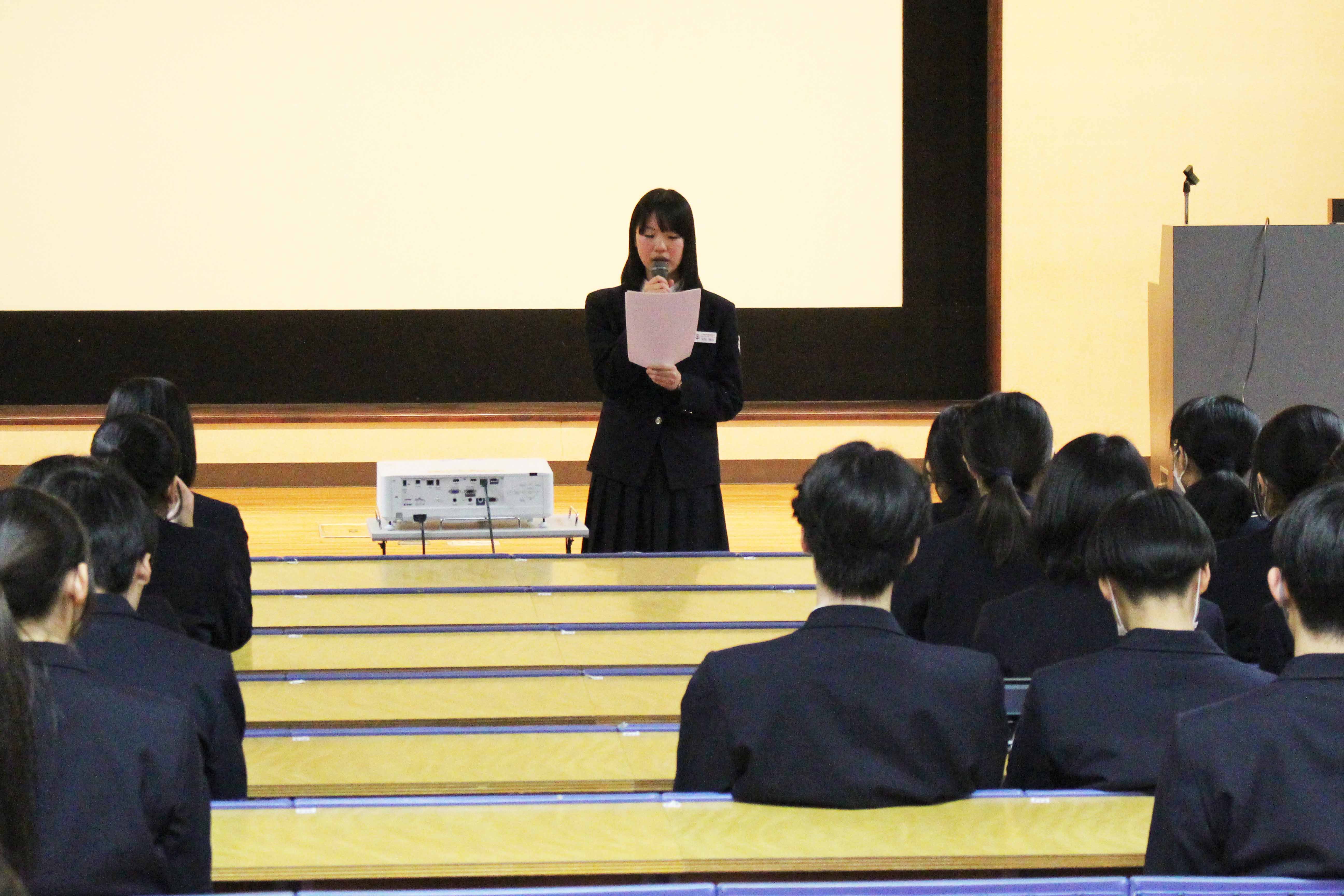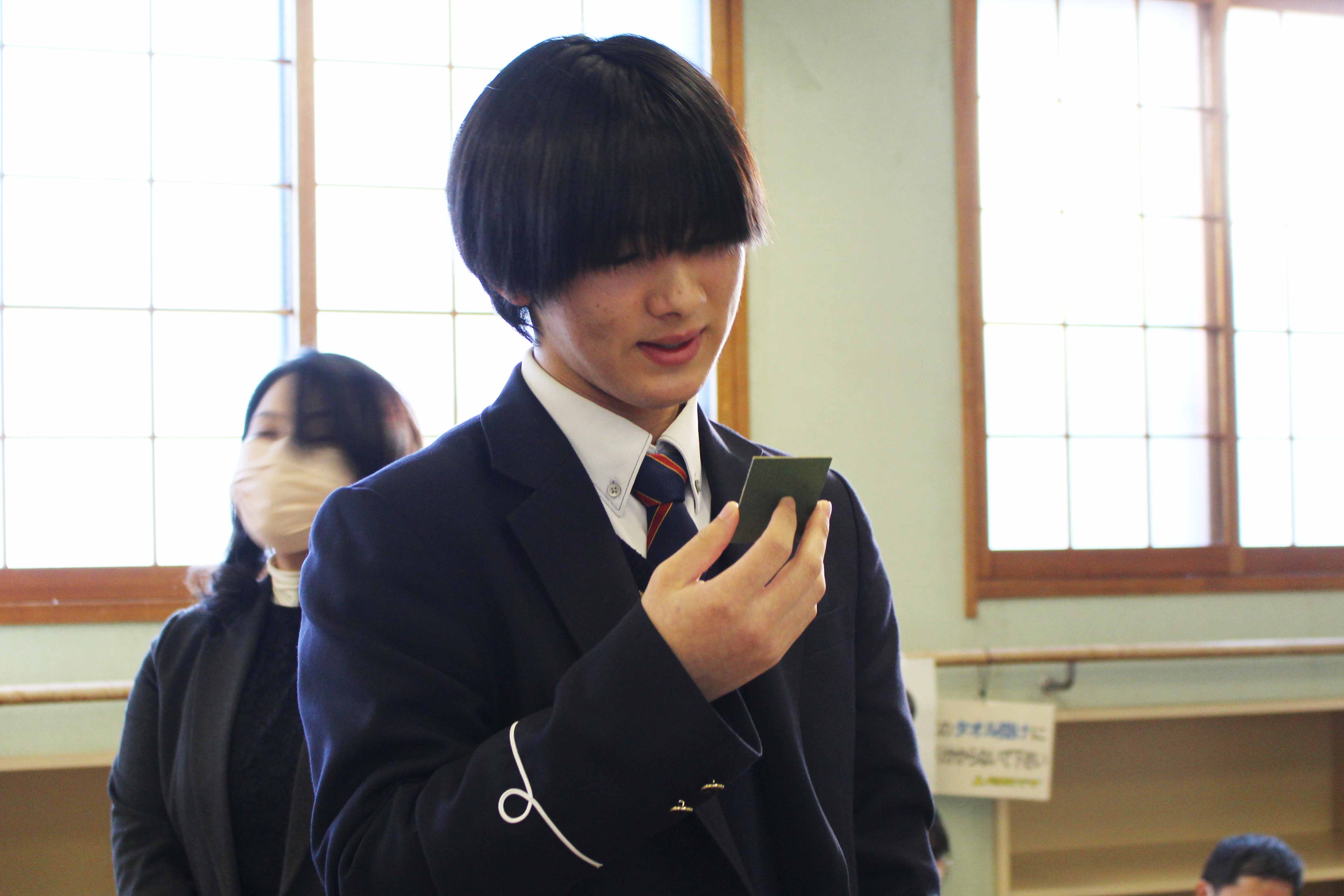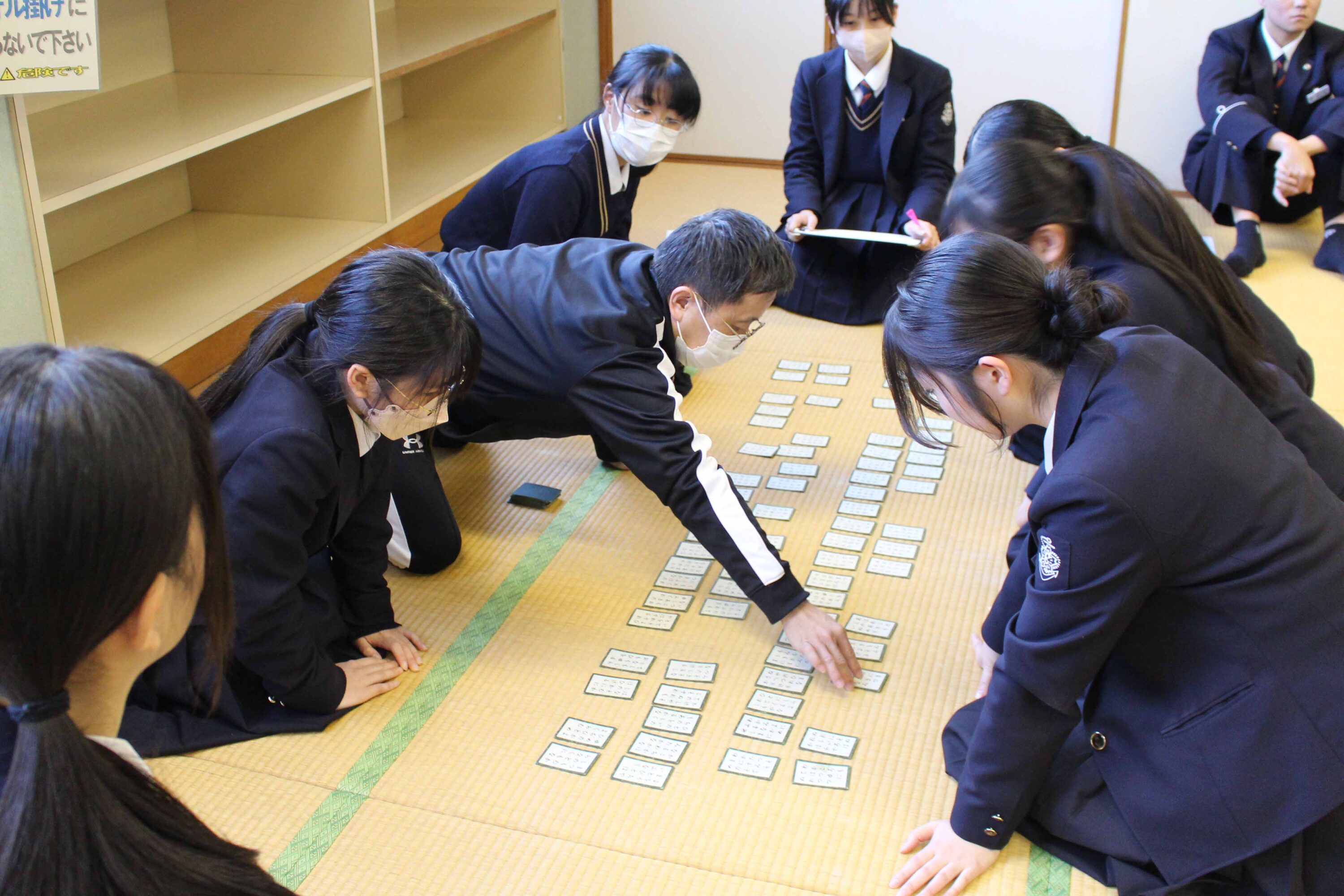 競技かるたは明治37年に東京で全国大会を開催したことに始まるとされていて、その競技は、武道にも通じるものがあり、集中力・忍耐力・精神力を尽くして臨む真剣勝負は、まさに「畳の上の格闘技」といわれています。本校では、昭和56年1月30日に第1回かるた会が開催され、そこから長い年月を重ねて今年で47回目を数えます。これは、本校の大切な伝統の一つと言えます。今日は、小倉百人一首が歌われた時代の人々の想いや情景に心を寄せながら1枚でも多くの札を取ることを目標に最後まで全力で取り組んでください。