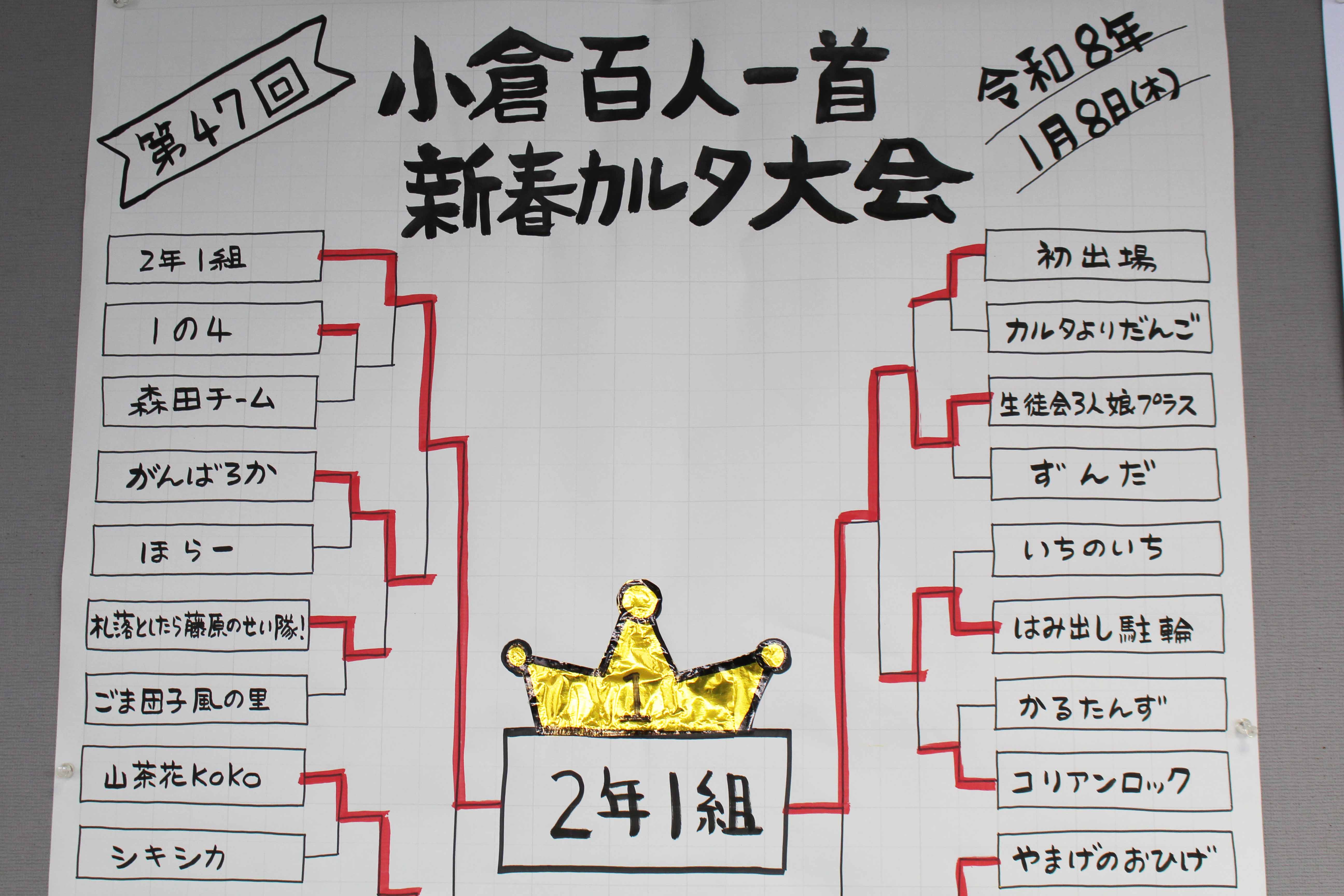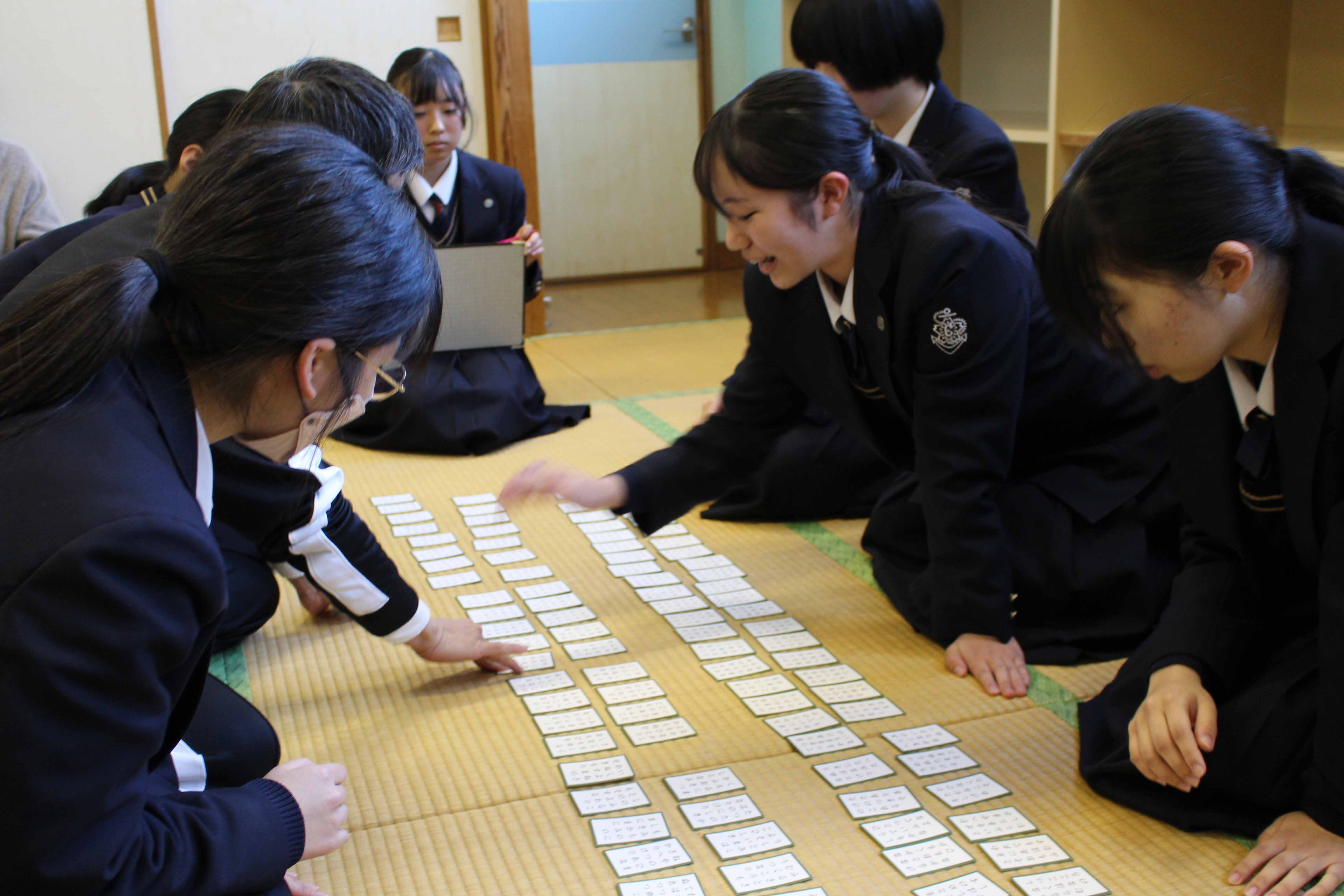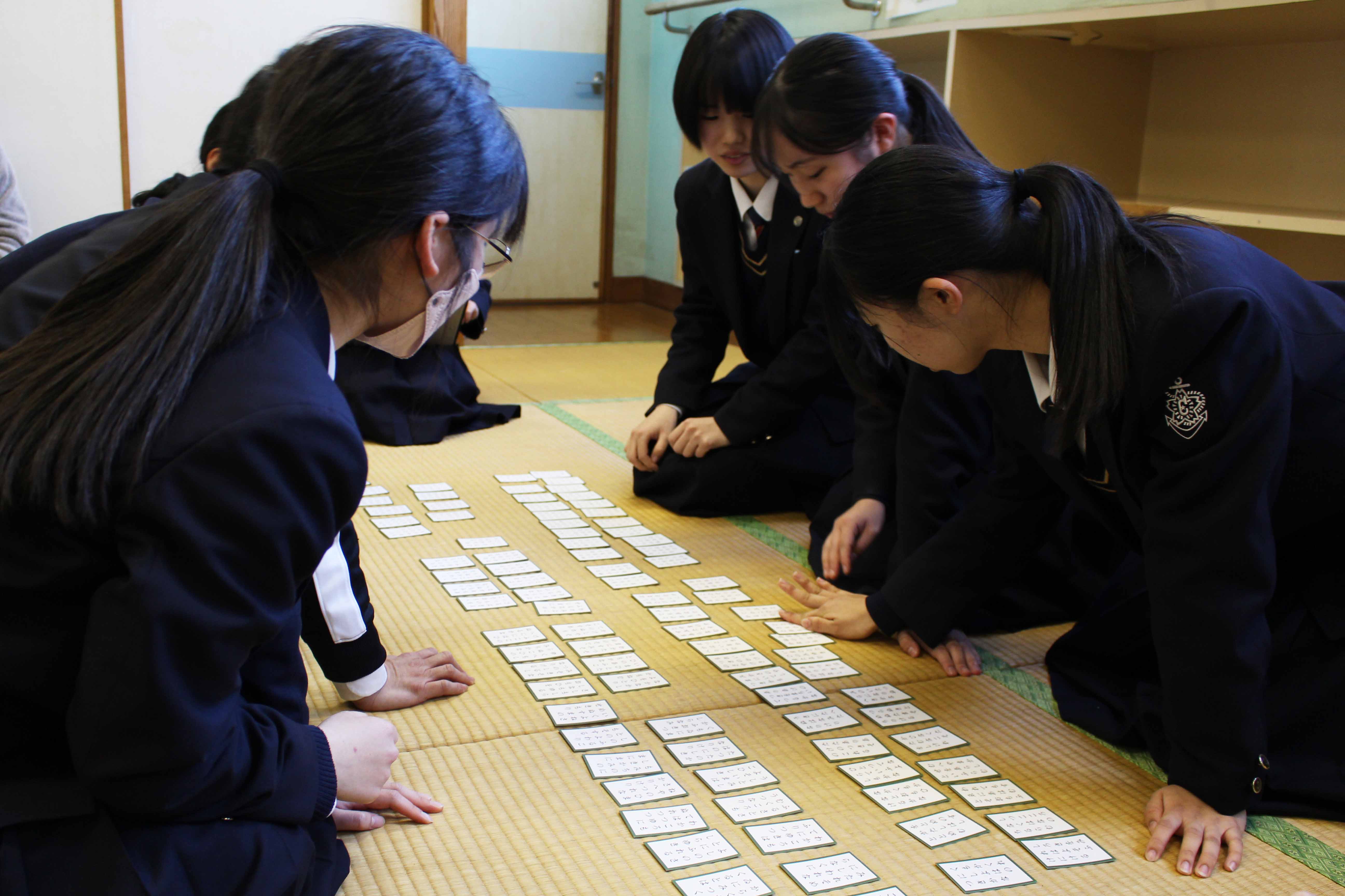 1月8日(木)、本校セミナーハウスで新春カルタ大会が行われました。今回は30チームが出場し、熱戦を繰り広げました。入賞したチームには賞状と図書券が贈呈され、参加賞として全員におだんごとお茶が振舞われました。