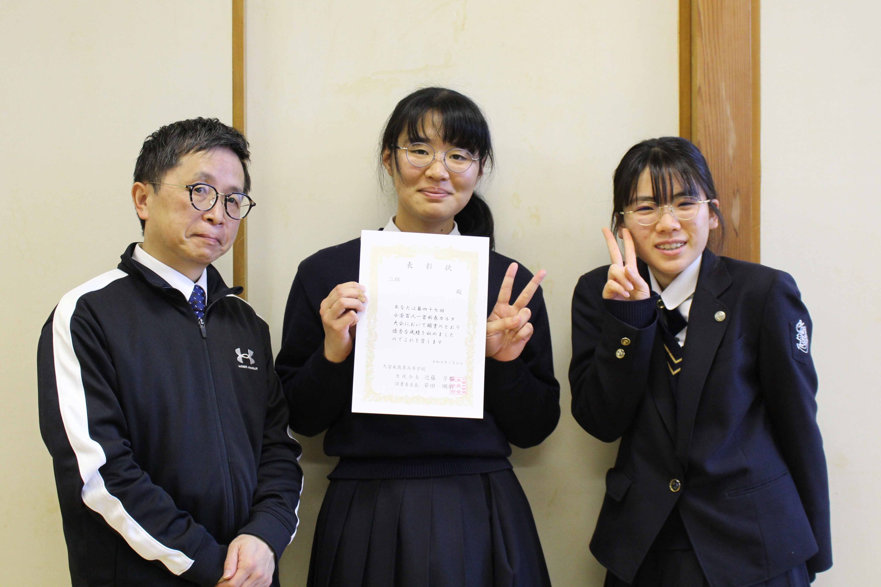 3 位 「山茶花koko」 林 里咲(3年・浮羽中)、溝江 季來(2年・輝翔館)、高場 光春(教員)