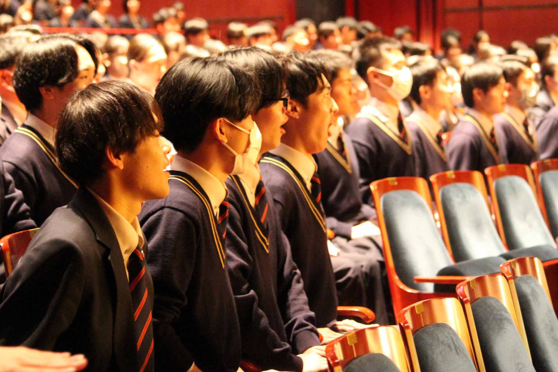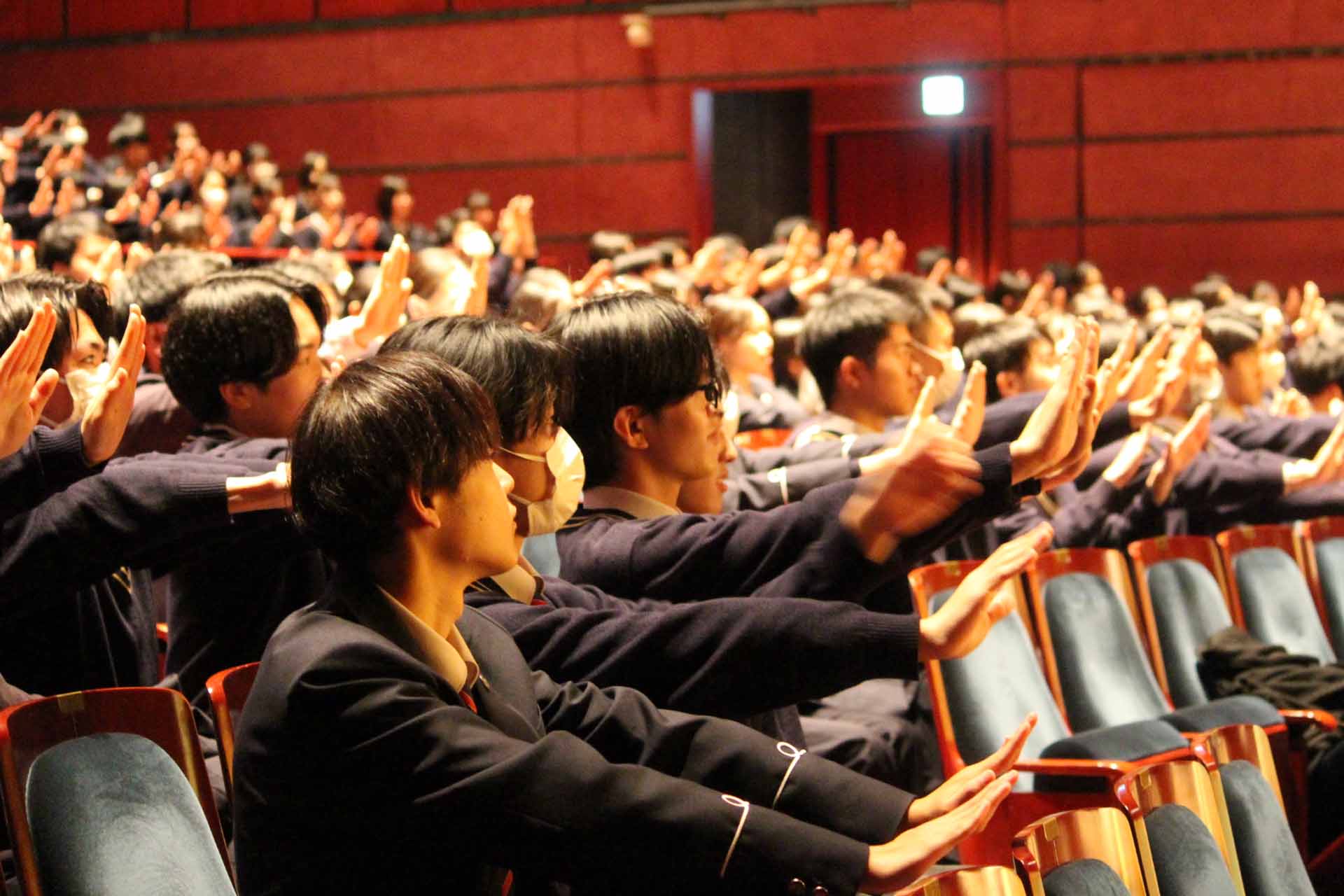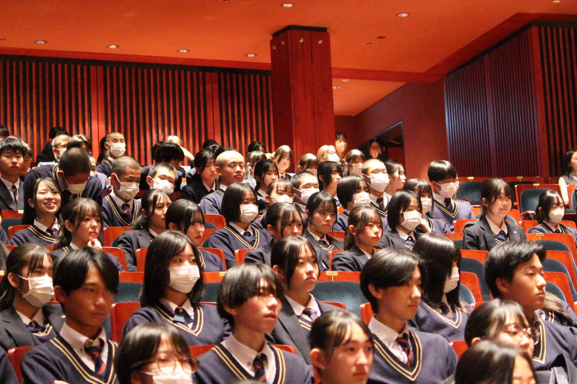 12月23日(火)、久留米シティプラザで芸術鑑賞会が行われました。今回は日本の伝統工芸である「狂言」を知るということで、和泉元彌さんを迎えて「狂言らいぶ」を鑑賞しました。普段なかなか見ることのない狂言の世界を、わかりやすく解説していただきながら教えていただきました。最後に生徒を代表して長尾ひいろさんが謝辞を述べました。