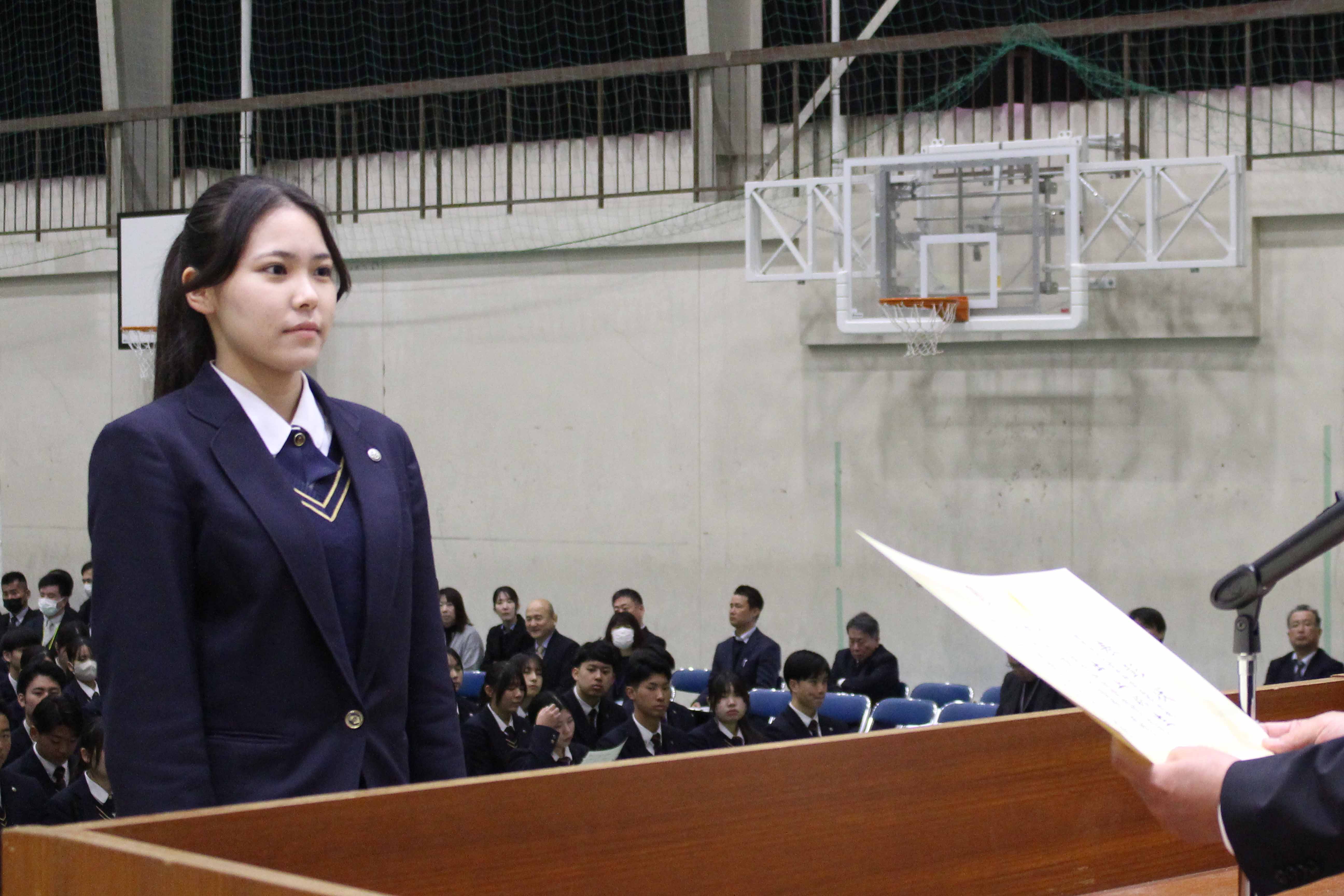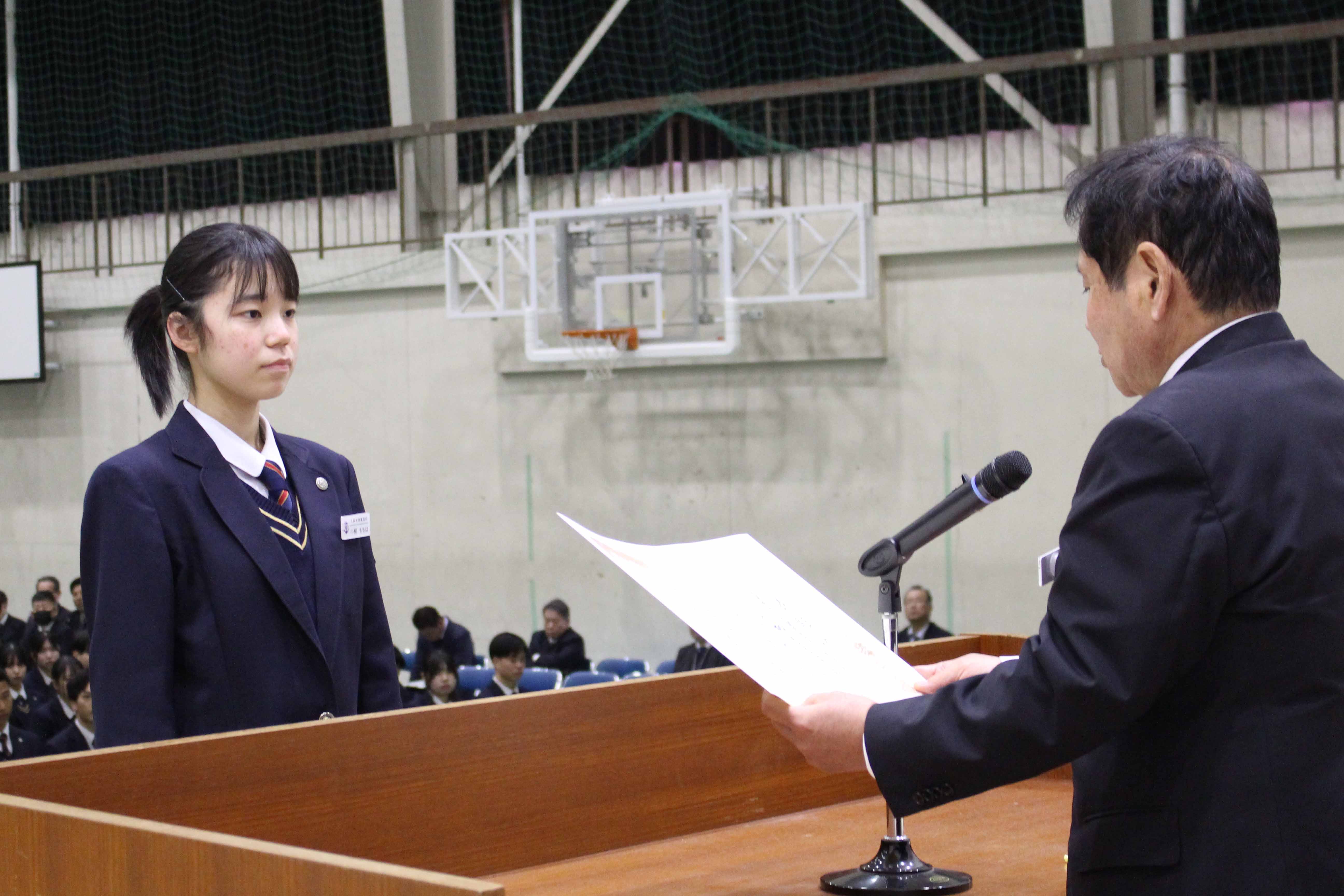 ・学術操行優秀賞 代表 大門 香里奈(3年・大利中)