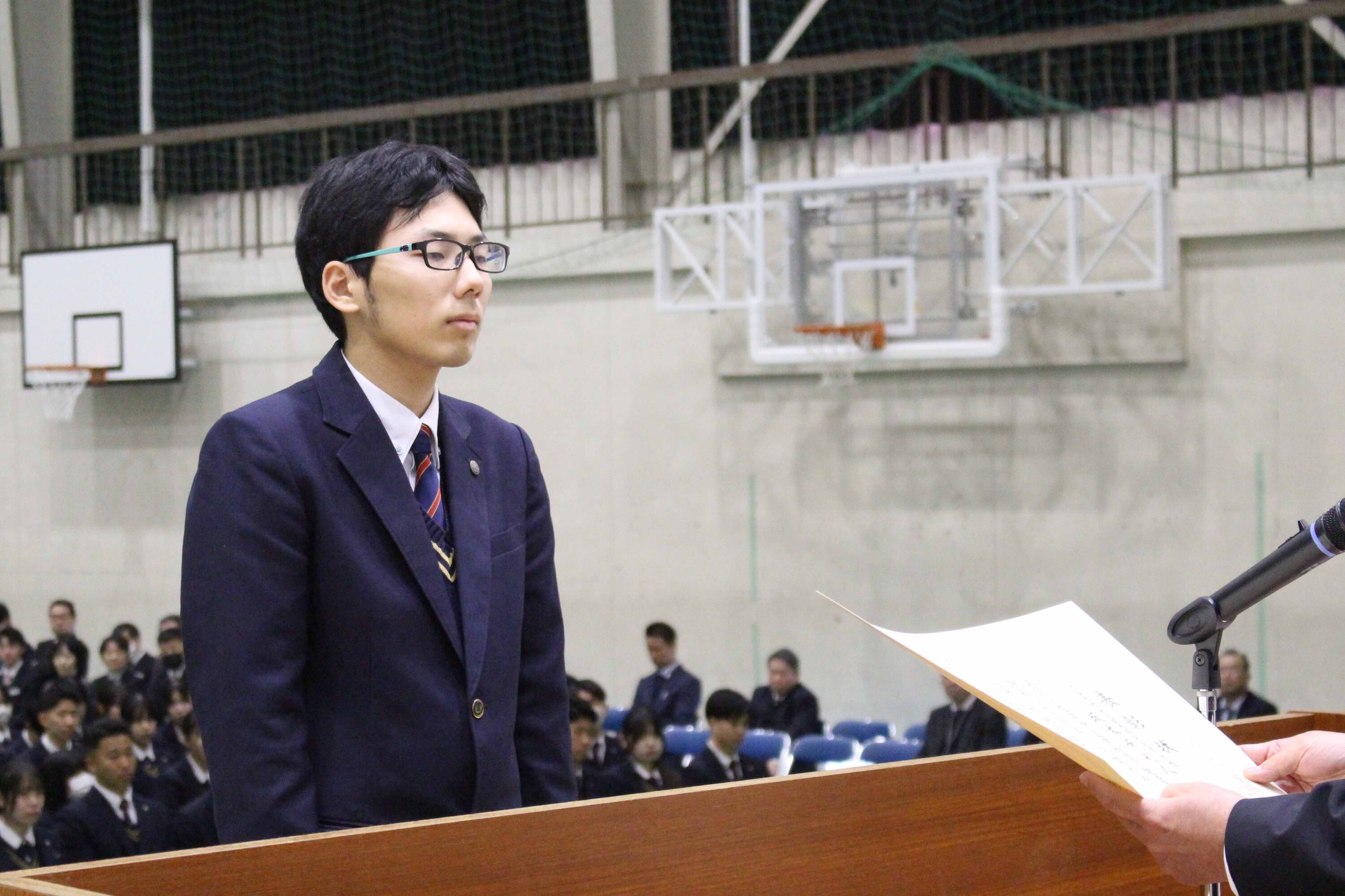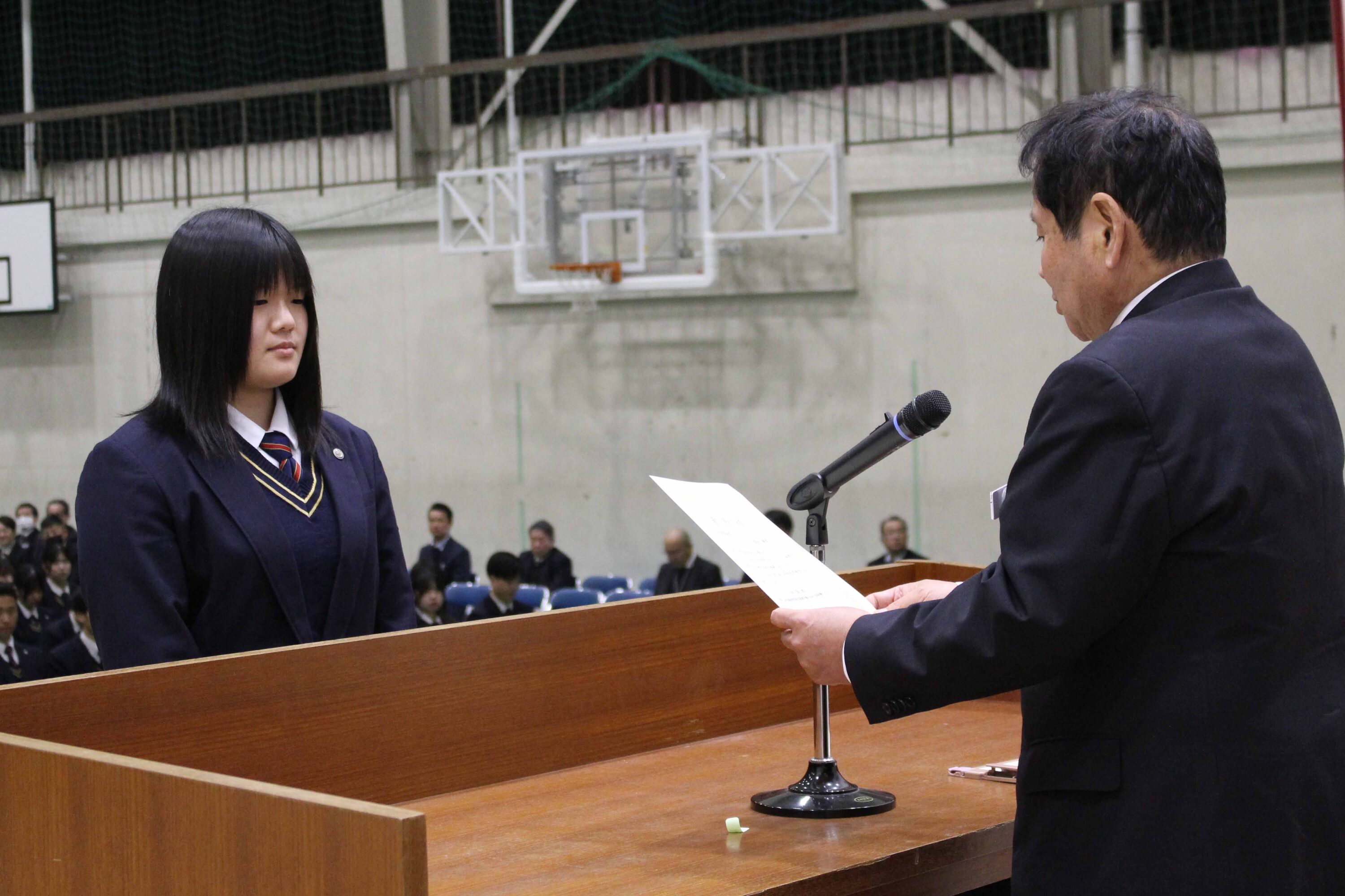 3月2日(月)、本校体育館で生徒表彰式が行われました。おもに3年間の成績優秀者や難関資格取得者、部活動などの表彰をおこなうもので今年度は延べ248名の生徒が表彰を受けました。