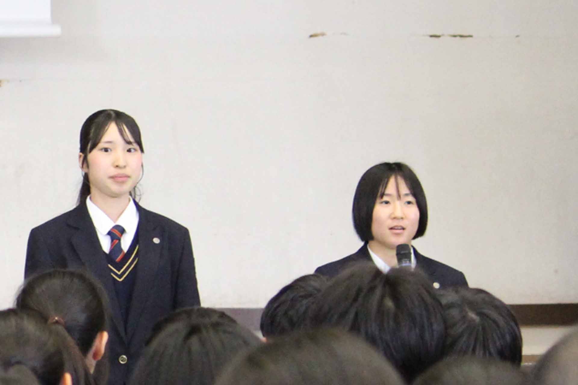 今日、皆さんが健康で元気に登校してくれたことに安心しました。新1年生が入学してきますが先輩としていい姿を見せていってください。そして皆さんには、『想像力』自分の言動のその先を想像する力をつけてほしいので、生徒指導としてサポートしていきたいと思っています。